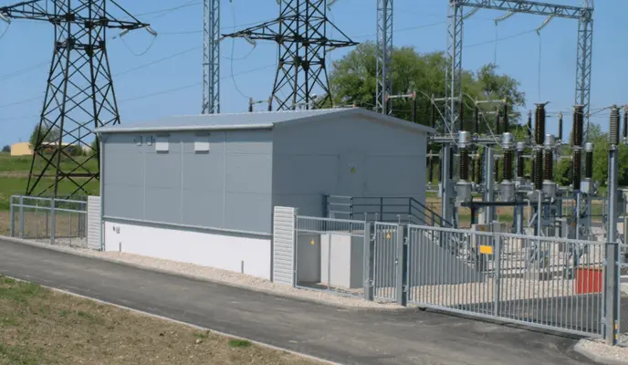 - Transformatorstasjoner for mellomspenning og lavspenning, brukt til mottak, transformasjon og distribusjon av elektrisk kraft.